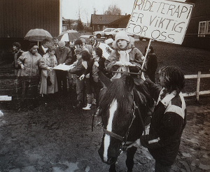Fredrikstad kommunes planer om å regulere nabotomten til småindustri og boliger, kunne fått katastrofale følger. De funksjonshemmede stilte opp med store protestplakater når kommunen kom på befaring. Til stor glede gikk saken i vår favør.1991Ridehall